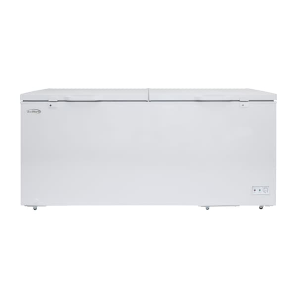 KoolMore 30 Cu. Ft. Commercial Chest Freezer Introducing the KoolMore 30 Cu. Ft. Commercial Chest Freezer, the ideal solution for all your large-scale freezing needs. With a massive capacity, robust construction, and versatile features, this chest freezer is perfect for both commercial and residential use. This freezer is also ETL listed for safety and sanitation, ensuring it meets the highest standards for quality and reliability. Key Features: Versatile and Spacious : With a huge 30 cu. ft. capacity, this freezer is designed for both commercial and residential use, providing ample space for storing large quantities of food. Ideal for high-volume commercial kitchens, food service operations, as well as residential garages and basements. Dual Doors for Easy Access : Equipped with two vertical swing doors, this freezer allows for easy access to stored items, improving efficiency and convenience in busy environments. Garage Ready : Built to operate efficiently in a wide range of ambient temperatures, this freezer is ideal for garage storage, ensuring reliable performance even in less controlled environments. Includes 2 Freezer Baskets : Comes with two freezer baskets, each capable of holding up to 55 lbs., for better organization and easy access to frequently used items, enhancing convenience and usability. Sturdy Construction : Featuring a white coated steel exterior and an aluminum interior, this freezer is built to withstand heavy use and provide long-lasting durability, ensuring it remains a reliable part of your kitchen for years to come. Manual Defrost : The manual defrost feature ensures optimal performance and energy efficiency, maintaining the freezer's longevity and reliability. Quiet Operation : With a Noise level of just 55 dB, this freezer operates quietly, minimizing disruption in busy commercial settings or quiet residential areas. Temperature Control : Simple and reliable mechanical controls allow you to easily set and maintain the desired temperature, ensuring your food stays frozen in optimal conditions. Easy Mobility : The freezer features six casters, allowing for easy movement and positioning, offering flexibility and convenience in any setting. Secure Storage : Features a lock and key system, providing secure storage and ensuring that your valuable frozen items are safely stored. ETL Certified.