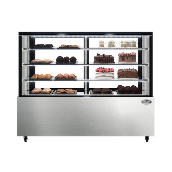 You spend hours crafting fresh, delicious pastries and cakes to serve customers or guests, which means you want to ensure they stay delicious and entice people the moment they walk in the room. The Koolmore Refrigerated Bakery Display Case was designed to help you stay more organized, display your foods, and draw-in customers like never before. Boasting a stainless-steel frame, 71” glass design, adjustable glass shelving, and all the space you’ll need to access your goods, it’s the perfect choice for small businesses, grocery stores, and bakeries. This cold bakery display case utilizes R290 refrigerant which is naturally more eco- and environmentally friendly because it has a potential ozone depletion level of 0. The bottom of our bakery display rack features heavy-duty, smooth-rolling 2” caster wheels to make it easier to install or shift if you need to clean underneath. We want to ensure your baked goods stay fresh and delicious which is why this unit is designed with an easy-to-read display and push-button temperature system that lets you optimize your temperatures and maintain them more effectively with less effort . The exterior is made from the highest-quality stainless steel which means they’re stain, rust, and odor resistant. Simply remove the shelves, wipe down the interior, and spray the glass as needed to keep it looking fresh and new. This is a quiet bakery display case to ensure it’s not distracting to customers or clients. The rear sliding doors on the back make it easier to load or unload desserts or display items, while the front glass helps better protect fresh food from the general public. Overall dimensions 70.09. W x 28 .75 in. D x 55.1 in H. Internal Dimensions: 45 1/2 in. W x 23 in. D x 25 3/8 in H. Horsepower: 1/2+ HP, Number of Shelves: Three, Voltage 115 V, Hertz: 60 Hertz. NEMA 5-15P