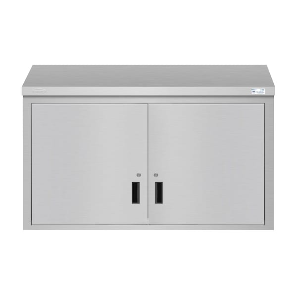 Upgrade your professional kitchen or workspace with the KoolMore 48 In. Commercial Wall Cabinet. This premium, NSF-certified cabinet is designed to provide secure, efficient storage while enhancing the aesthetic appeal of any commercial environment. Perfect for commercial kitchens, medical facilities, and other demanding settings, this wall cabinet combines robust construction, practical features, and sleek design to meet all your storage needs. Key Features: Secure Storage with Locking Doors : Keep your valuable items safe and protected with secure locking doors, providing peace of mind in busy environments Durable Stainless-Steel Construction : Crafted from high-quality 304 stainless steel with a 20-gauge thickness, this cabinet is built to withstand heavy use and resist corrosion, ensuring long-lasting durability Slanted Roof Design : The slanted roof design mitigates dust collection and is easy to clean, helping maintain a hygienic and tidy workspace. Ample Storage with High Load Capacity : With two robust shelves, each capable of holding up to 214.5 lbs., youll have ample space to store a variety of items securely. Space-Efficient Wall Mounting : Maximize your space with this wall-mounted cabinet, which includes a mounting bracket for easy and secure installation in any busy kitchen or work area. Smooth Hinged Doors : The swing doors offer smooth and reliable operation, ensuring easy access to your stored items. The doors are designed to open and close effortlessly, providing quick access to contents while maintaining a secure closure. Ventilation Slits : Maintain a fresh and clean storage environment with slits that allow for proper ventilation. These slits ensure that air circulates within the cabinet, preventing moisture build-up and keeping stored items in optimal condition. Easy to Clean : The stainless-steel construction and smooth surfaces make this cabinet easy to wipe down and sanitize, maintaining a hygienic environment in compliance with health standards. Robust Mounting Brackets : The included wall mounting brackets are sturdy and reliable, ensuring that the cabinet remains securely affixed to the wall, even when fully loaded. NSF Certified: Built to meet stringent NSF safety standards, guaranteeing reliable performance.