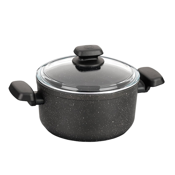 Ornella, produced from recycled, completely natural material, with environmentally friendly technology, makes delicious meals using very little oil with its extra scratch-resistant volcanic-looking PTFE coating and high-temperature resistant silicone outer coating. The included glass lid allows you to keep an eye on your food while it cooks making sure your dish is perfect every time. The gorgeous black speckled appearance looks great in any kitchen.