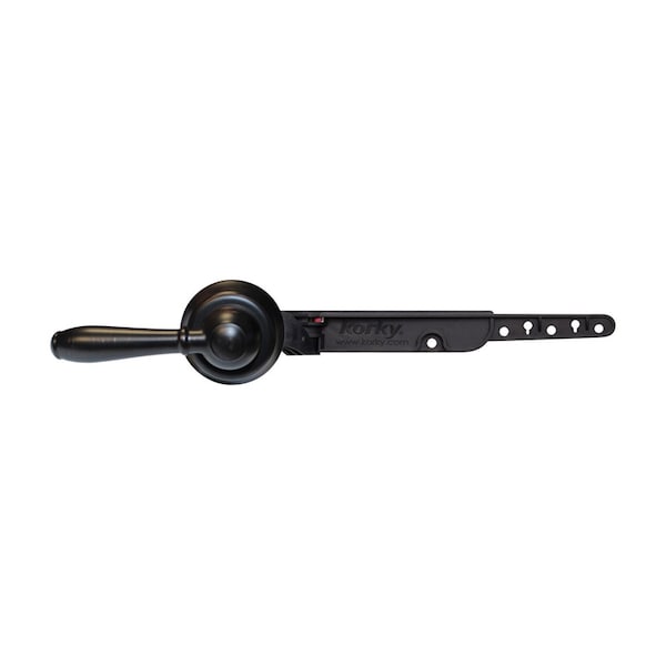 Designed to fit the majority of toilets, the Korky StrongARM Handle and Lever easily adjusts to fit all tank positions including: front, side, angle, right and down. Optimized for use with both standard 2 inch and large 3 inch flappers and canister-style flush valves, the engineer grade material in common stress areas performs as well as brass and aluminum levers. The StrongARM lever is adjustable to eliminate the need to bend for fitment and fits most popular brands, including American Standard, Kohler, TOTO and others. The faucet style handle, in a oil-rubbed bronze finish, is a great way to upgrade any toilet and compliment the bathrooms decor.