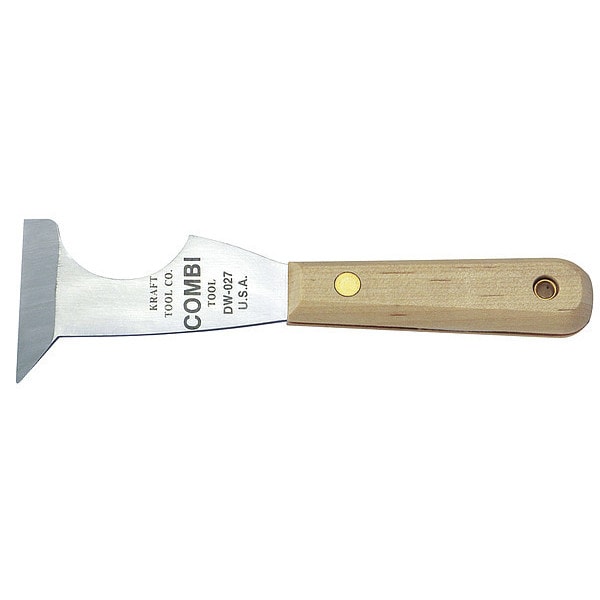 If you work with paint, the Kraft Tool DW027 Painters Tool is a tool you cannot do without. The stainless steel blade has a pickled wood handle and comes in a length of 3 1/2 in. and width of 2 3/8 in. It also has an overall length of 7 1/2 in. Designed to help remove paint from rollers, this painters tool is ideal for cutting out around the roller frame when using a roller pan. Its tapered handle has a hang hole for easy storage on any hook or nail when not in use. The Kraft Tool DW027 Painters Tool is the perfect tool for painting your next project.