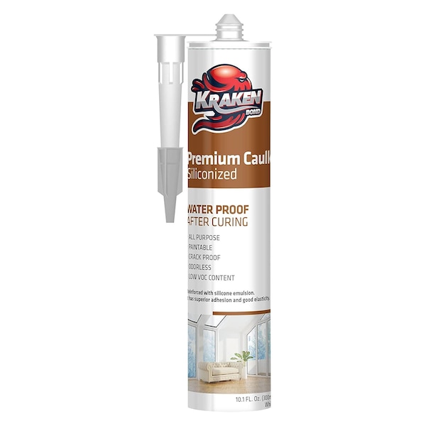 Krakenbond Premium Siliconized Caulk - All Purpose, Indoor & Outdoor, Paintable, 10.1 oz, White