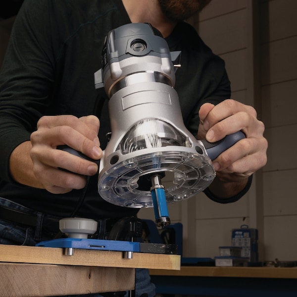 This bit pairs with the Kreg Corner Routing Guide set to make perfect corner profiles with any router. Perfect for trimming wood laminate counters and pattern work. A top and bottom bearing glides along your workpiece to produce clean uniform cuts. Cuts composition materials plywoods hardwoods and softwoods.