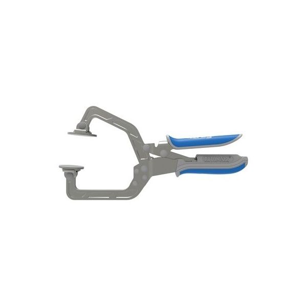 3, Wood Project Clamp, Reach Clamps Materials Up To 318 Thick, Auto Adjusts To Match Material Thickness, Steel Pin Fits Snugly Into Pocket Hole, Swiveling Pad Secures Mating Piece, Design Works With Interior Exterior Pocket Holes, Adjustment Knob Provides Easy To Regulate Clamping Pressure, Ergonomic Padded Grips Prevent Hand Fatigue