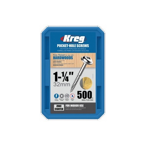 500 Count, 114 x 7, Fine Thread, Washer Head, Zinc Coated, Pocket Hole Screws, Self Tapping Screws Are Specially Designed For Pocket Hole Joinery, Self Tapping Auger Point That Eliminates PreDrilling A Flat Head That Seats Flush In The Bottom Of The Pocket Hole, Screws Utilize A 2 Square Drive Recess, Deep Recess Of The Square Drive Provides Positive Driver Engagement To Reduce Cam Out