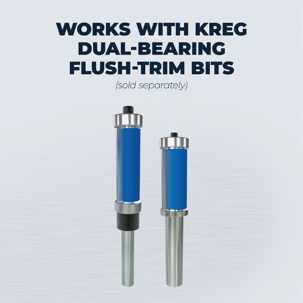 Make perfect corner profiles with any router using the Corner Routing Guide Set. You can create decorative corners in three simple steps. First select and attach the profile you want. Next adjust the edge stop posts to your material. Finally rout and youll get perfect results every time. The guide works with trim routers handheld routers and even router tables. Kreg Flush-Trim Bits sold separately.