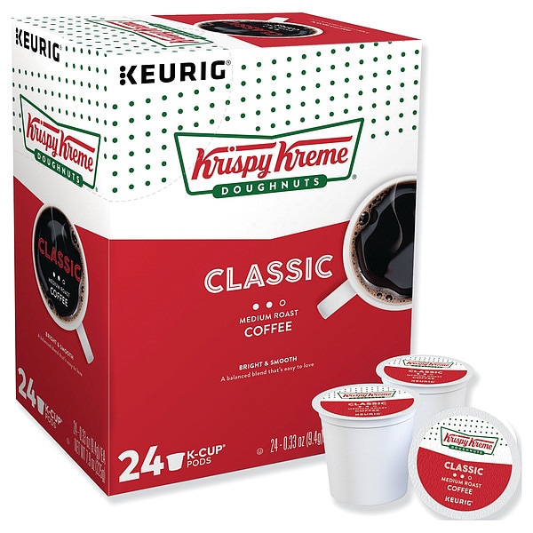 Coffee, Net Weight 7.92 oz, Beverage Package Style Pod, Coffee Roast/Tea Type Medium, Package Weight 0.33 oz, Sub-Brand Krispy Kreme Doughnuts(R), Beverage Flavor Classic, Product Type Coffee, Caffeine Type Caffeinated, Beverage Format Ground, Package Quantity 24