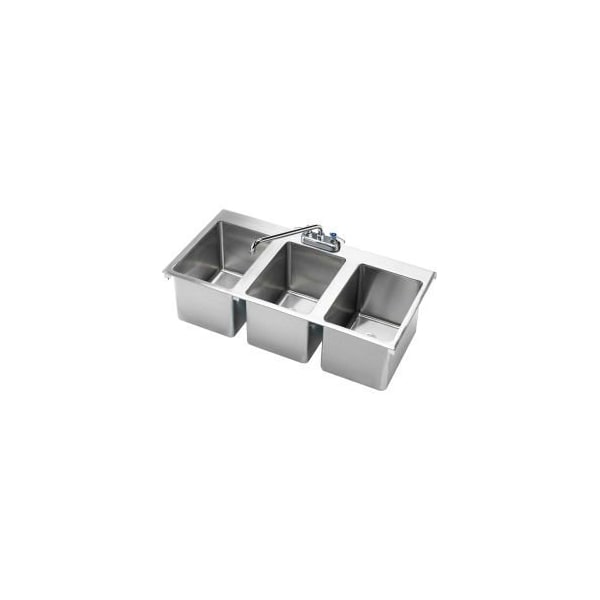 - KROWNE DROP-IN HAND SINK 3 COMPARTMENT 36" X 18" X 10" OA 10" X 14" X 10" DEEP BOWL W/DECK MOUNTED FAUCET 1-1/2" DRAIN STAINLESS STEEL CONSTRUCTION (34" X 14-1/4" CUTOUT)