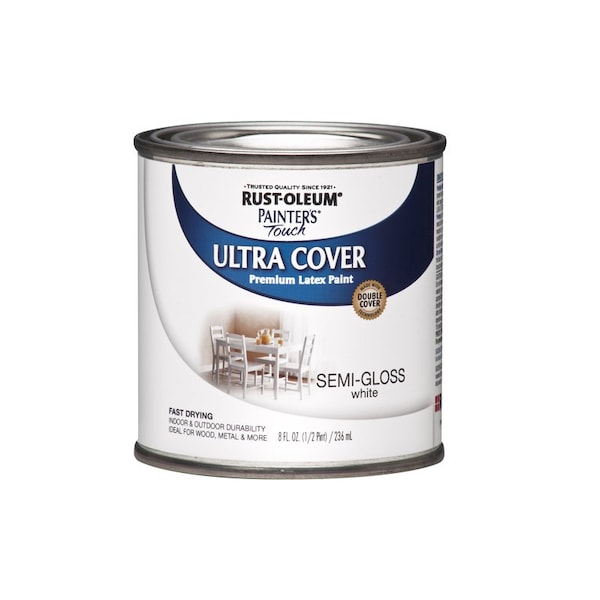 Rust-Oleum Painters Touch Semi-Gloss White Water-Based Ultra Cover Paint Exterior and Interior 0.5 p