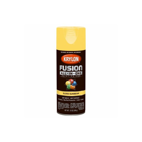 Fusion AllInOne, 12 OZ, Sunbeam, Gloss Spray Paint Primer, Bonds To Difficult Surfaces Such As Plastics Ready To Assemble Furniture Without Sanding Or Priming, Provides Maximum Rust Protection For All Outdoor Projects Offers A Broad Color Palette With Multiple Finishes Sheens, For Indoors Outdoors