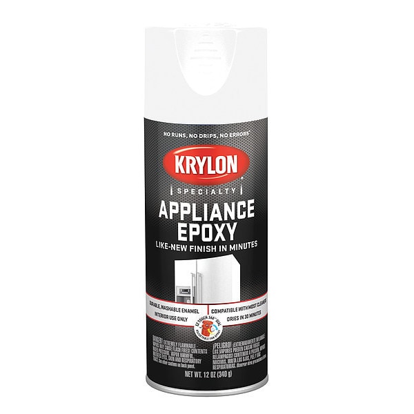 Appliance Epoxy, Opacity 100 Percent, Coating Application Appliance Epoxy, Color Family White, Compatible Surface Material Metal, Sheen Gloss, Finish Texture Smooth, Resin Type Acrylic Enamel, Color White, Container Size 12 oz, Coverage Area 18 sq ft, Base Type Solvent, Dry Time 30 min, Use Location Exterior, Interior, Sub Brand Appliance Epoxy, Container Type Aerosol Can, Dry Time Tack Free 30 min, Dry Time to Recoat 4 to 24 hr, Maximum Application Temperature 85 Degrees F