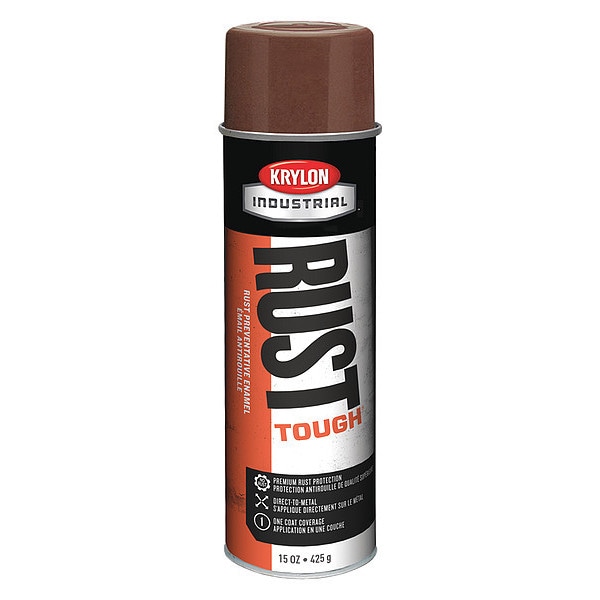 Rust Preventative Spray Paint, Opacity 100 Percent, Coating Application Rust Preventative Spray Paint, Color Family Brown, Compatible Surface Material Metal, Steel, Wood, Sheen High-Gloss, Finish Texture Smooth, Resin Type Acrylic Alkyd Enamel, Color Chestnut Brown, Container Size 20 oz, Coverage Area 35 sq ft, Base Type Solvent, Dry Time 25 min, Use Location Exterior, Interior, Sub Brand Rust Tough, Container Type Aerosol Can, Dry Time Tack Free 25 min, Dry Time to Recoat 25 min