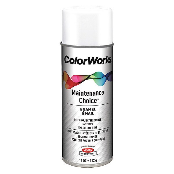 Spray Paint, Opacity 0 Percent, Coating Application General Purpose Spray Paint, Color Family White, Compatible Surface Material Metal, Sheen High-Gloss, Resin Type Alkyd Enamel, Color White, Container Size 16 oz, Coverage Area 18 sq ft, Base Type Solvent, Dry Time 15 min, Use Location Exterior, Interior, Sub Brand ColorWorks, Container Type Aerosol Can, Dry Time Tack Free 1 hr, Dry Time to Recoat 4 hr, Flammability Flammable, Maximum Application Temperature 85 Degrees F