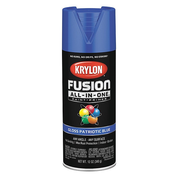 Rust Preventative Spray Paint, Opacity 100 Percent, Coating Application General Purpose Spray Paint, Color Family Blue, Compatible Surface Material Laminate, Masonry, Metal, Plastic, Wood, Sheen Gloss, Finish Texture Smooth, Resin Type Alkyd Enamel, Color Patriotic Blue, Container Size 16 oz, Coverage Area 25 sq ft, Base Type Solvent, Dry Time 25 min, Use Location Exterior, Interior, Sub Brand Fusion, Container Type Aerosol Can, Dry Time Tack Free 2 hr, Dry Time to Recoat 2 hr to 48 hr
