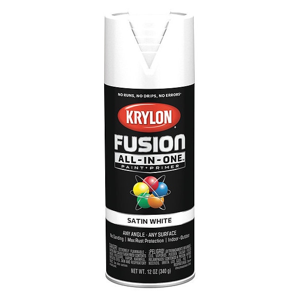 Rust Preventative Spray Paint, Opacity 100 Percent, Coating Application General Purpose Spray Paint, Color Family White, Compatible Surface Material Laminate, Masonry, Metal, Plastic, Wood, Sheen Satin, Finish Texture Smooth, Resin Type Alkyd Enamel, Color White, Container Size 16 oz, Coverage Area 25 sq ft, Base Type Solvent, Dry Time 25 min, Use Location Exterior, Interior, Sub Brand Fusion, Container Type Aerosol Can, Dry Time Tack Free 2 hr, Dry Time to Recoat 2 hr to 48 hr