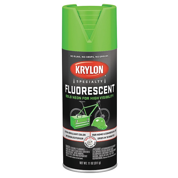 Spray Paint, Opacity 100 Percent, Coating Application General Purpose Spray Paint, Color Family Green, Compatible Surface Material Metal, Wood, Sheen Gloss, Finish Texture Smooth, Resin Type Acrylic Enamel, Color Fluorescent Green, Container Size 16 oz, Coverage Area 18 sq ft, Base Type Solvent, Dry Time 15 min, Use Location Exterior, Interior, Sub Brand Fluorescent, Container Type Aerosol Can, Dry Time Tack Free 2 hr, Dry Time to Recoat 4 to 24 hr, Maximum Application Temperature 85 Degrees F