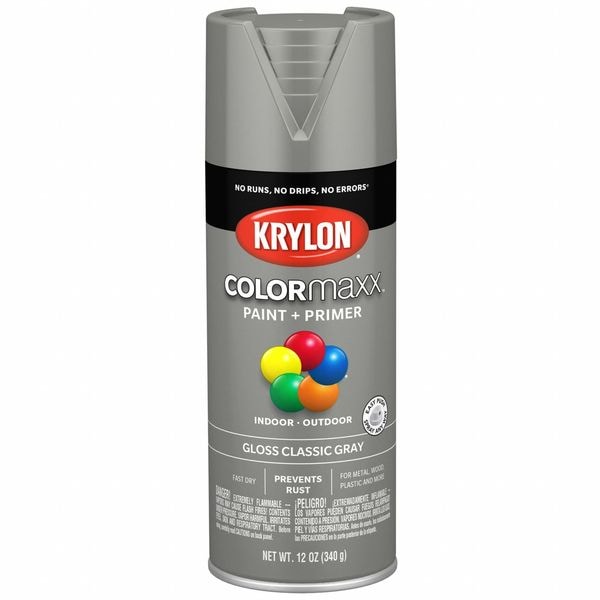 Spray Paint Primer, Opacity 100 Percent, Coating Application Rust Preventative Spray Paint, Color Family Gray, Compatible Surface Material Ceramic, Fabric, Glass, Metal, Paper, Papier-mâché, Plaster, Wicker, Wood, Sheen Gloss, Finish Texture No Texture, Resin Type Acrylic, Color Classic Gray, Container Size 12 oz, Coverage Area 20 to 25 sq ft, Base Type Solvent, Dry Time 10 minute, Use Location Exterior, Interior, Sub Brand COLORMAXX, Dry Time Tack Free 1 hr, Dry Time to Recoat 1 hr
