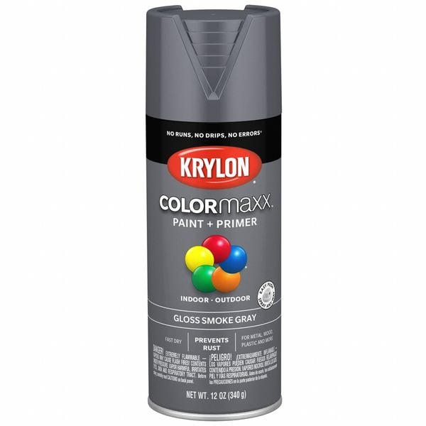 Spray Paint, Opacity 100 Percent, Coating Application Rust Preventative Spray Paint, Color Family Gray, Compatible Surface Material Ceramic, Fabric, Glass, Metal, Paper, Papier-mâché, Plaster, Wicker, Wood, Sheen Gloss, Finish Texture No Texture, Resin Type Acrylic, Color Smoke Gray, Container Size 12 oz, Coverage Area 20 to 25 sq ft, Base Type Solvent, Dry Time 10 minute, Use Location Exterior, Interior, Sub Brand COLORMAXX, Dry Time Tack Free 1 hr, Dry Time to Recoat 1 hr