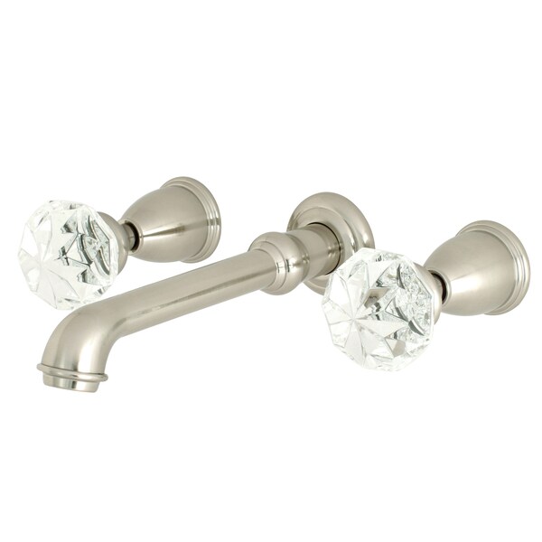 The exquisite design of this faucet tastefully flatters the elegant architecture of traditional homes with its fine detailing. Attached to the wall behind your sink, the horizontal pop adds a stunning element to your bathroom design. The Krystal Onyx Two-Handle Wall Mount Bathroom Faucet and its featured sturdy brass construction and premium brushed nickel finish are guaranteed to glamorize your home's traditional ensemble for years to come.