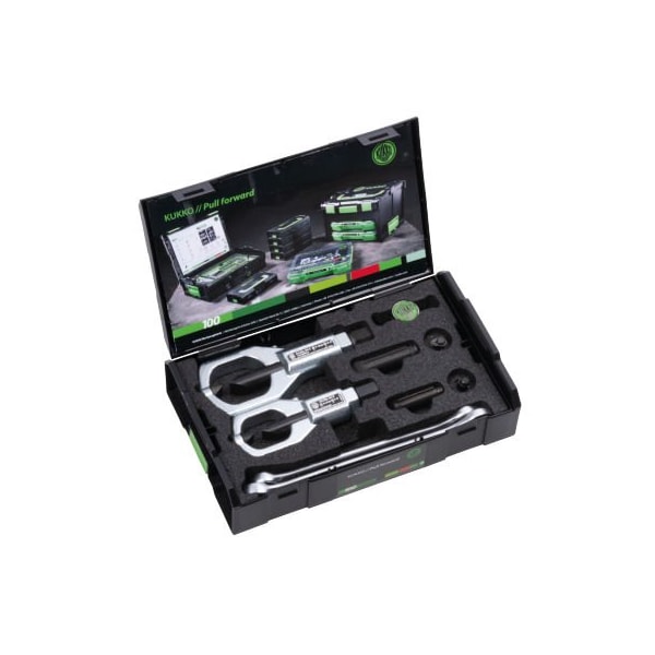Double-edged models exerting twice the normal splitting force on irretrievable nuts in quality classes 5, 6 and 8. one operation through double cutting action. splitting nuts can be done without damaging the threaded bolt. wear and corrosion protection thanks to tin coating. the nut splitters band provides additional support when turning the chisel back. practical package for universal use. complete easy-to-manage package. for splitting nuts size 10-36 mm. Very sharp cutting through facet cut. Kukko chisel finished with tin coating to increase hardness. The tin coating has excellent friction properties, allowing the chisel to cut more effectively with less applied force. Gently turn the chisel in the other direction by pulling back. Two hardened chisel cutting edges. Set includes replacement chisel. Including 2 ring spanners for operating the nut splitter. Instructions on the cover. Secure storage in special foam. The splitting chisels of the nut splitters are wearing parts. Blunt, pitted or broken chisels must be replaced immediately. Do not use any electrical or pneumatic servo screwdrivers or hammer drills. Protective blanket required. Protective goggles required. length without spindle metric 109, 134mm nut size metric 6 - 24 cutting width of chisel metric 14, 16mm nut size metric 10 - 36mm