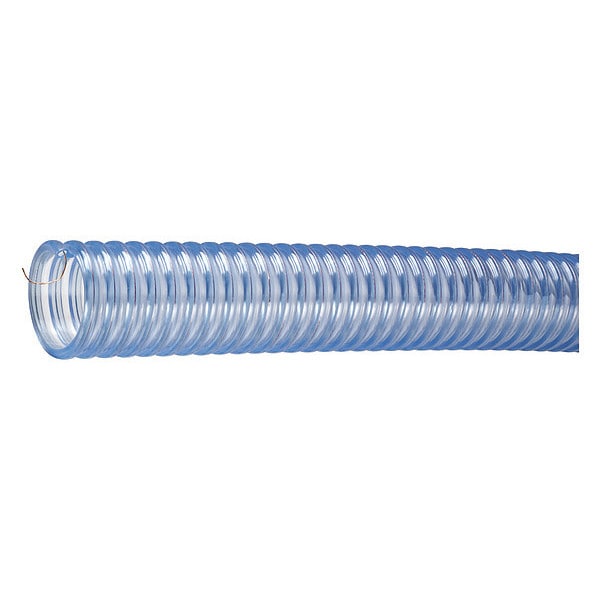 Bulk Food Grade Hose, Hose Inside Dia. 2 in, Hose Outside Dia. 2 31/64 in, Hose Length 100 ft, Hose Tube Material PVC, Hose Cover Material PVC, Hose Reinforcement Type Helix, Hose Reinforcement Material Not Reinforced, Hose Color Clear, Vacuum Rating 28 in Hg, Burst Pressure 120 psi, Max. Working Pressure @ 70 F 40 psi, Safety Factor 3:1, Temp. Range -4 Degrees to 150 Degrees F, Standards BSE/TSE, FDA, ROHS, USDA, Bend Radius 4 in, Hose Configuration Bulk Hose, Static Control Wire Yes