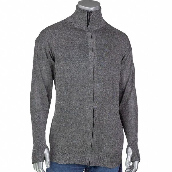 Cut Resistant Jacket, ANSI/ISEA Cut Level A4, A5, A6, A7, ANSI/ISEA Cut Load 1,524 g, 2,712 g, 3,294 g, 4,208 g, Material ATA Fiber, Length 30 1/2 in, Gender Unisex, Front Closure Type Zipper, Collar Style Mock Turtleneck, Color Gray, Number of Inside Pockets 0, Number of Outside Pockets 0, Style Jacket, Size M, Size-Body Type Regular, Maximum Chest Size 25 in, ANSI/ISEA Abrasion Cycles 600, ANSI/ISEA Puncture Force 150 N, Standards ASTM F2992-15, Insulated for Cold Conditions No