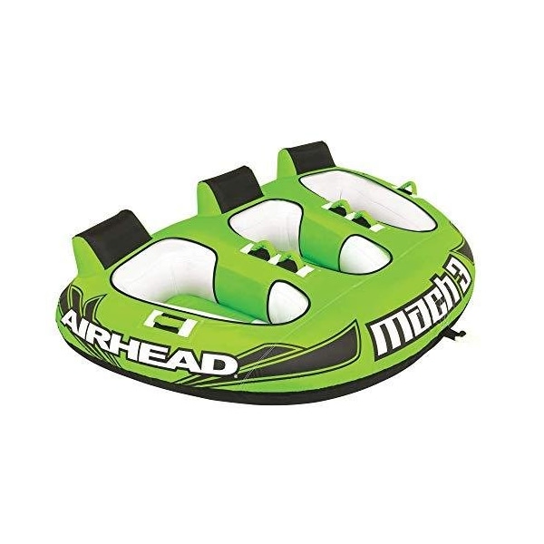 Mach 3 is an adaptable familyfriendly tube that offers fun for all ages and experiences For young or timid riders, the cockpit design creates a feeling of security to boost confidence on the water Thrillseekers or adult riders can enjoy Mach 3 at higher speeds for a surge of adrenaline Inflated floors provide cushioned seating while backrests make it easy to enjoy a wild ride No matter whos riding, six neoprene handles with knuckle guards make it easy and convenient to stay on And with a Patented Speed Safety Valve for easy inflating and deflating, you never have to worry about going too fast Lastly, the heavy gauge PVC bladder and durable doublestitched nylon cover guarantee years of fun to come The flexible features of Mach 3 make it a standout boat towable for families seeking classic, reliable fun Kwik Tek AHM31