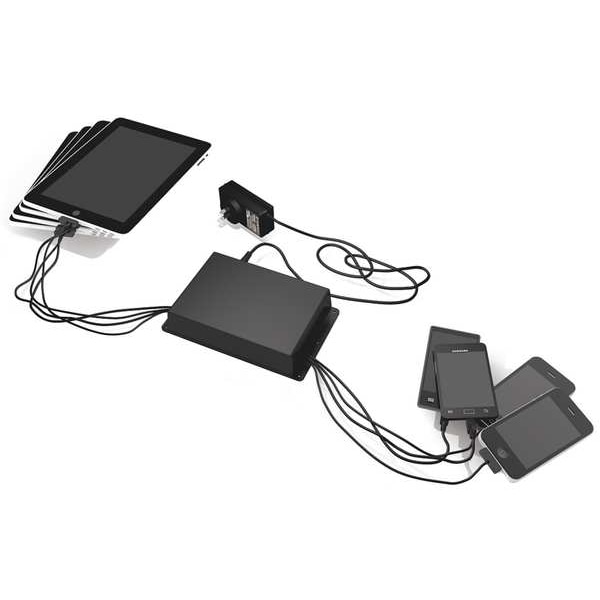 Device Charging Station, Mounting Style Desktop, Charging Cord Configuration (4) 9 in Lightning, (4) 9 in Type C cables, Overall Height 2 in, Overall Width 6 1/2 in, Overall Depth 18 in, Power Requirement 0.75A @ 120V AC, Charges Up To 8 Devices, Includes (4) 9 in Lightning, (4) 9 in Type C cables, Compatible With Most Major Cell Phones, Output Current - Charging 1 A, Max. Output Current 2.4 A, Output Voltage - Charging 5.0V DC, Standards FCC, MFi, USB
