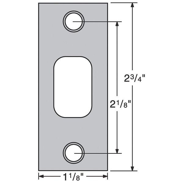 Deadbolt Strike, Strike Type Deadbolt, Length 2 3/4 in, Width 1 1/8 in, Color Silver, Satin Nickel Finish, Material Steel, Hardware Included, Standards ANSI, ADA Compliant No