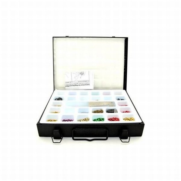 Keying Kit, For Use With Keyed Entry Locks, Material Steel, Standards ANSI, Includes Bottom Pins, Master Pins, Top Pins, Pin Springs, Retainer Caps, Retainer Cap Pins, Retainer Cap Pin Springs, Shim Stock, Cylinder Cap Removal Tool, Follower, Tweezers, Key Gauge