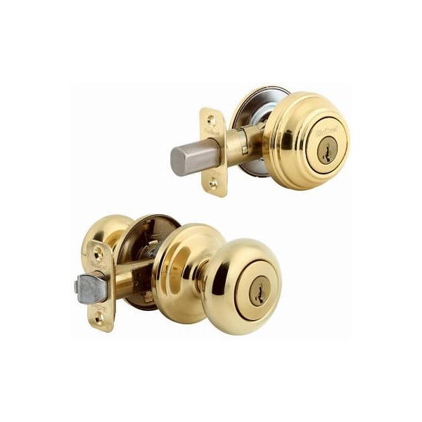Polished Brass Finish, Juno Knob Single Cylinder Deadbolt Combo Pack, With Smart Key Rekeying, AnsiBhma A156,2 Grade 2 Security, Clear Pack