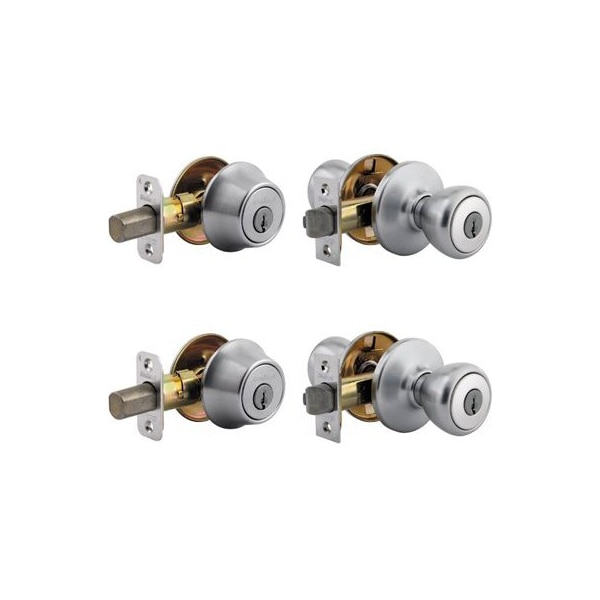 Kwikset Security, KA2, Satin Nickel Finish, Combo Lockset, Consists Of 2 Tylo Entry Locksets Keyed Alike With Two 660 Single Cylinder Deadbolts, Adjustable Latches Fit Both 238 234 Backsets, Round Corner Strikes, 5 Year Finish Warranty, Keyed In Pairs Of 2, Clear Pack
