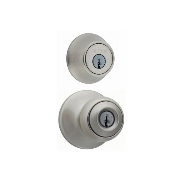 Kwikset Security, Satin Nickel Finish, Polo Combo Pack Lockset, 1 Polo Keyed Entry Knob Keyed One 660 Six Cylinder Deadbolt, Round Cornered, Adjustable Steel Latches Fit Both 238 234 Backsets, Round Corner Strikes, 5 Year Finish Warranty, Box Pack