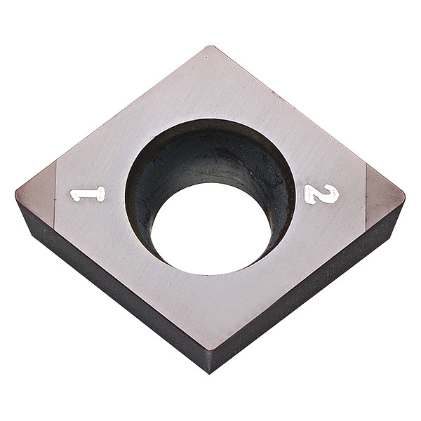 Diamond Turning Insert, Chip-Breaker Code MES, Inscribed Circle 1/4 in, Megacoat, ANSI Code CCMW2151S00525MES, Chip-Breaker Style Finishing, Clearance Angle 7 Degrees
