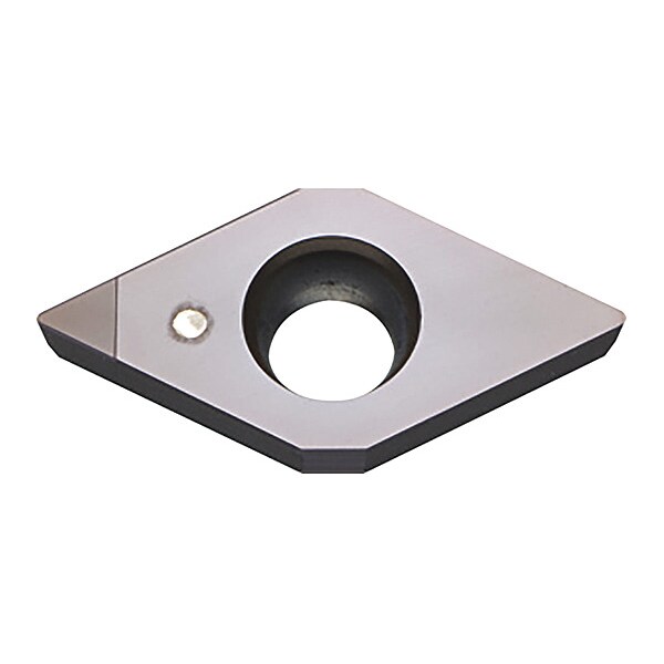 Diamond Turning Insert, Chip-Breaker Code SE, Inscribed Circle 1/4 in, Megacoat, ANSI Code DCMW2151T00315SE, Chip-Breaker Style Finishing, Clearance Angle 7 Degrees