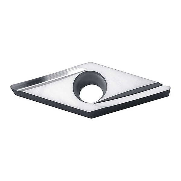 Diamond Turning Insert, Chip-Breaker Code Y, Inscribed Circle 1/4 in, Bright (Uncoated), ANSI Code VBGT221LY, Chip-Breaker Style Medium Finishing, Clearance Angle 5 Degrees