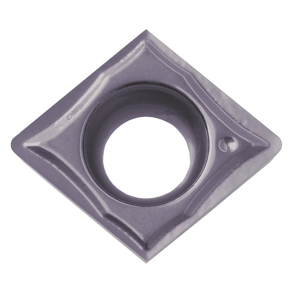 Diamond Turning Insert, Chip-Breaker Code GQ, Inscribed Circle 1/4 in, Megacoat, ANSI Code CCGT21502MFPGQ, Chip-Breaker Style Medium Finishing, Clearance Angle 7 Degrees , Coating Process PVD