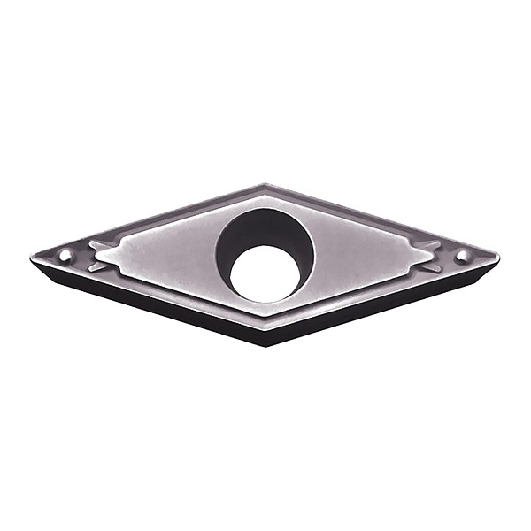 Diamond Turning Insert, Chip-Breaker Code HQ, Inscribed Circle 1/4 in, Megacoat, ANSI Code VCMT222HQ, Chip-Breaker Style Medium Finishing, Clearance Angle 7 Degrees , Coating Process PVD