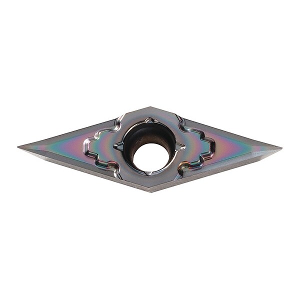 Diamond Turning Insert, Chip-Breaker Code CK, Inscribed Circle 1/4 in, DLC, ANSI Code VPGT2202MPCK, Chip-Breaker Style Finishing, Clearance Angle 11 Degrees