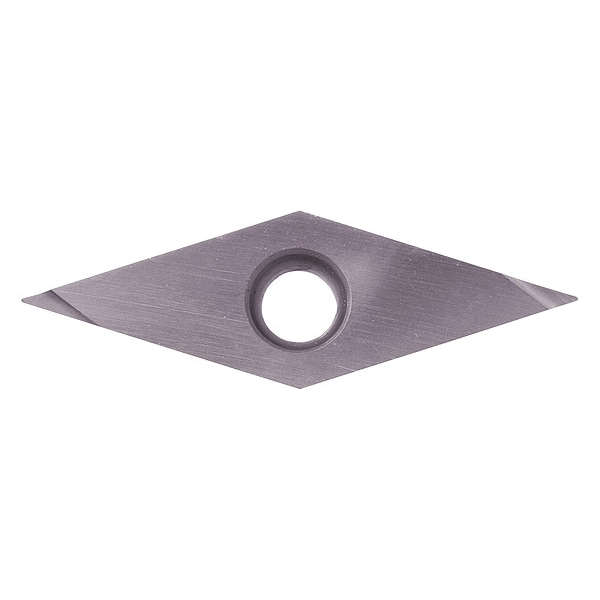 Diamond Turning Insert, Chip-Breaker Code FSF, Inscribed Circle 1/4 in, Megacoat, ANSI Code VBET2205MRFSF, Chip-Breaker Style Finishing, Clearance Angle 5 Degrees , Coating Process PVD