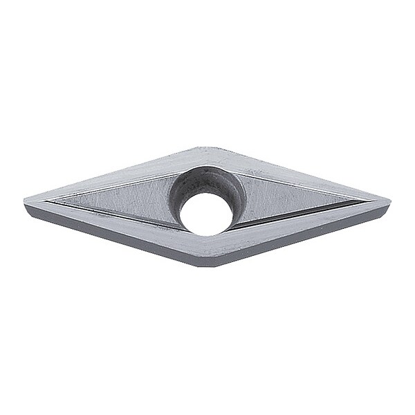 Diamond Turning Insert, Chip-Breaker Code Z, Inscribed Circle 1/4 in, Bright (Uncoated), ANSI Code VCGT2205FNZ, Clearance Angle 7 Degrees