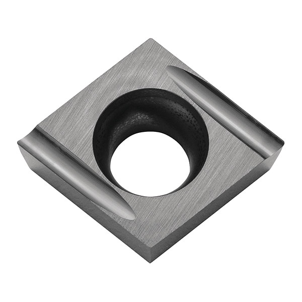 Diamond Turning Insert, Chip-Breaker Code USF, Inscribed Circle 3/8 in, Bright (Uncoated), ANSI Code CCET32502FRUSF, Clearance Angle 7 Degrees