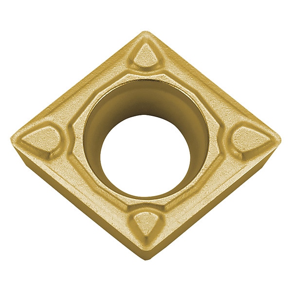 Diamond Turning Insert, Chip-Breaker Code MQ, Inscribed Circle 3/8 in, TiCN+Al2O3+TiN, ANSI Code CCMT3252MQ, Chip-Breaker Style Medium Finishing, Clearance Angle 7 Degrees , Coating Process CVD