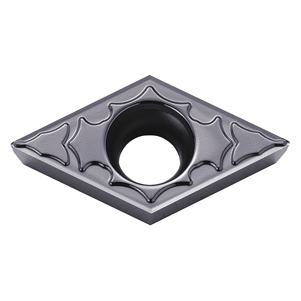 Diamond Turning Insert, Chip-Breaker Code CF, Inscribed Circle 3/8 in, Megacoat, ANSI Code DCGT32502MPCF, Clearance Angle 7 Degrees , Coating Process PVD