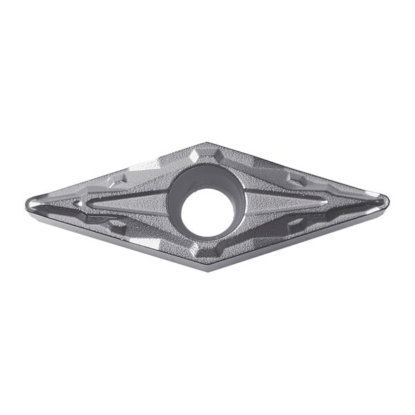 Diamond Turning Insert, Chip-Breaker Code PP, Inscribed Circle 3/8 in, Bright (Uncoated), ANSI Code VBMT332PP, Chip-Breaker Style Finishing, Clearance Angle 5 Degrees