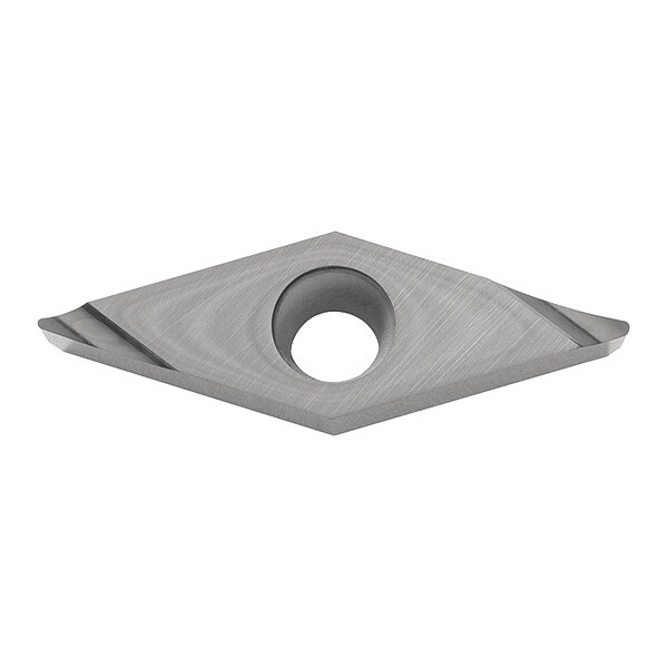 Diamond Turning Insert, Chip-Breaker Code A3, Inscribed Circle 3/8 in, Bright (Uncoated), ANSI Code VCGT332RA3, Chip-Breaker Style Medium Finishing, Clearance Angle 7 Degrees