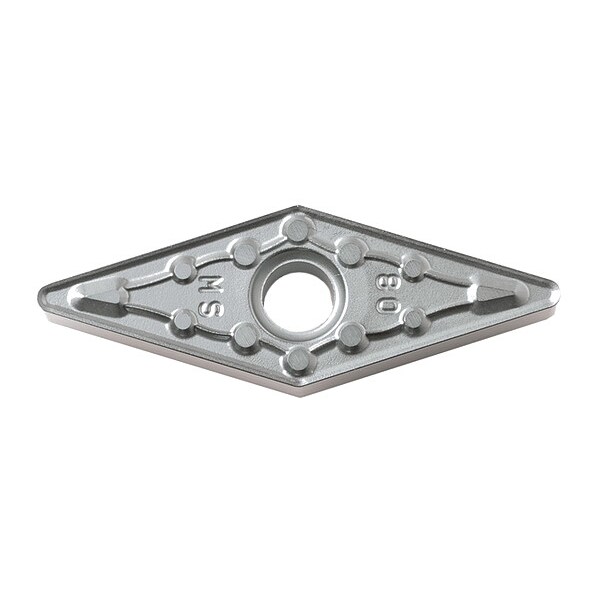 Diamond Turning Insert, Chip-Breaker Code MS, Inscribed Circle 3/8 in, Megacoat Hard, ANSI Code VNMG332MS, Chip-Breaker Style Medium Roughing, Clearance Angle 0 Degrees , Coating Process PVD
