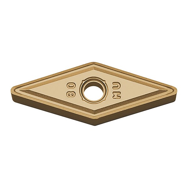Diamond Turning Insert, Chip-Breaker Code MU, Inscribed Circle 3/8 in, TiCN+Al2O3+TiN, ANSI Code VNMG332MU, Chip-Breaker Style Medium Roughing, Clearance Angle 0 Degrees , Coating Process CVD