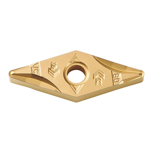 Diamond Turning Insert, Chip-Breaker Code VC, Inscribed Circle 3/8 in, TiCN+Al2O3+TiN, ANSI Code VNMG333RVC, Chip-Breaker Style Medium Finishing, Clearance Angle 0 Degrees , Coating Process CVD